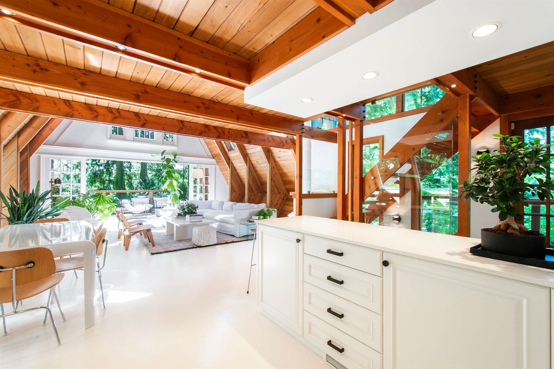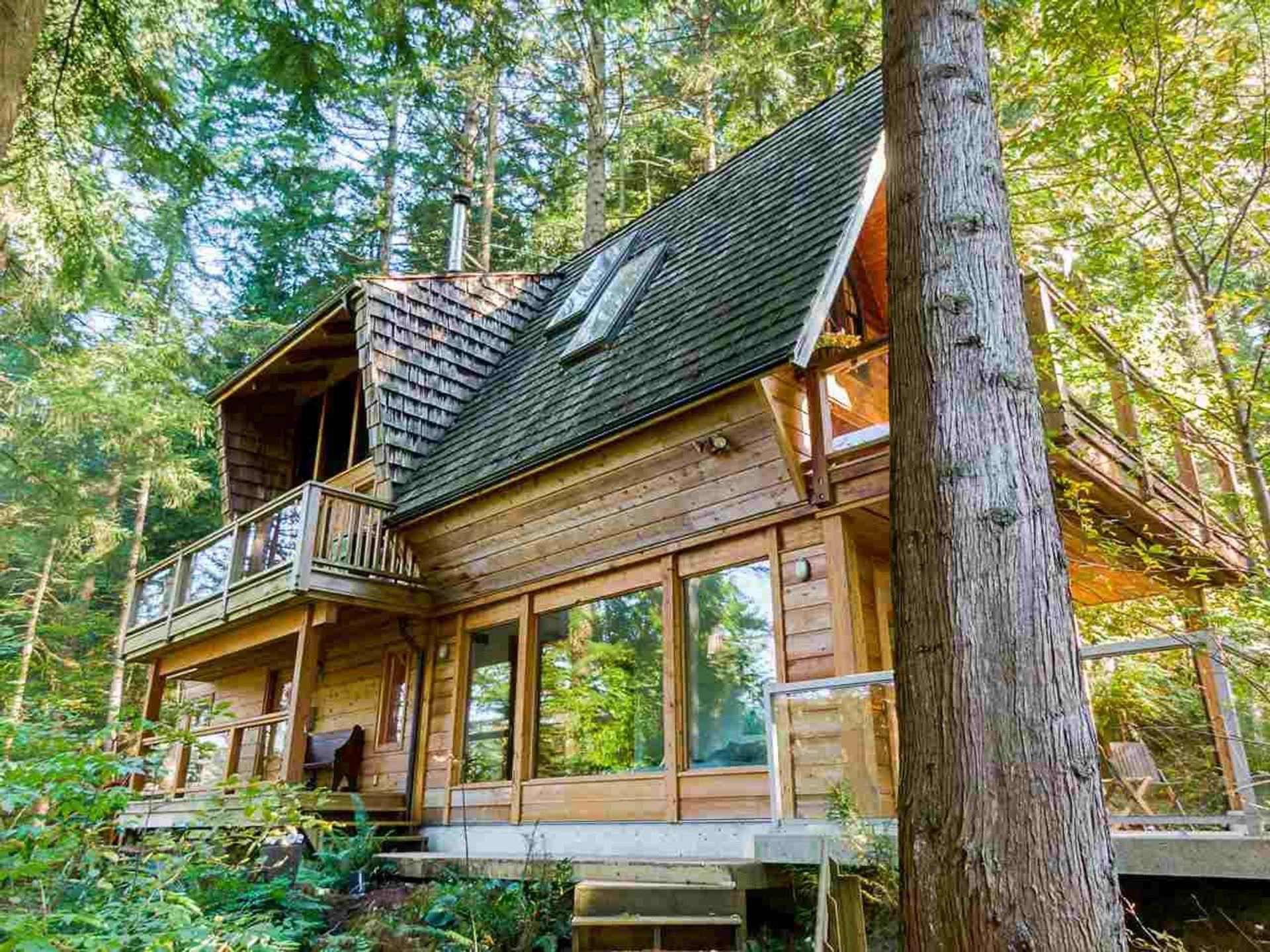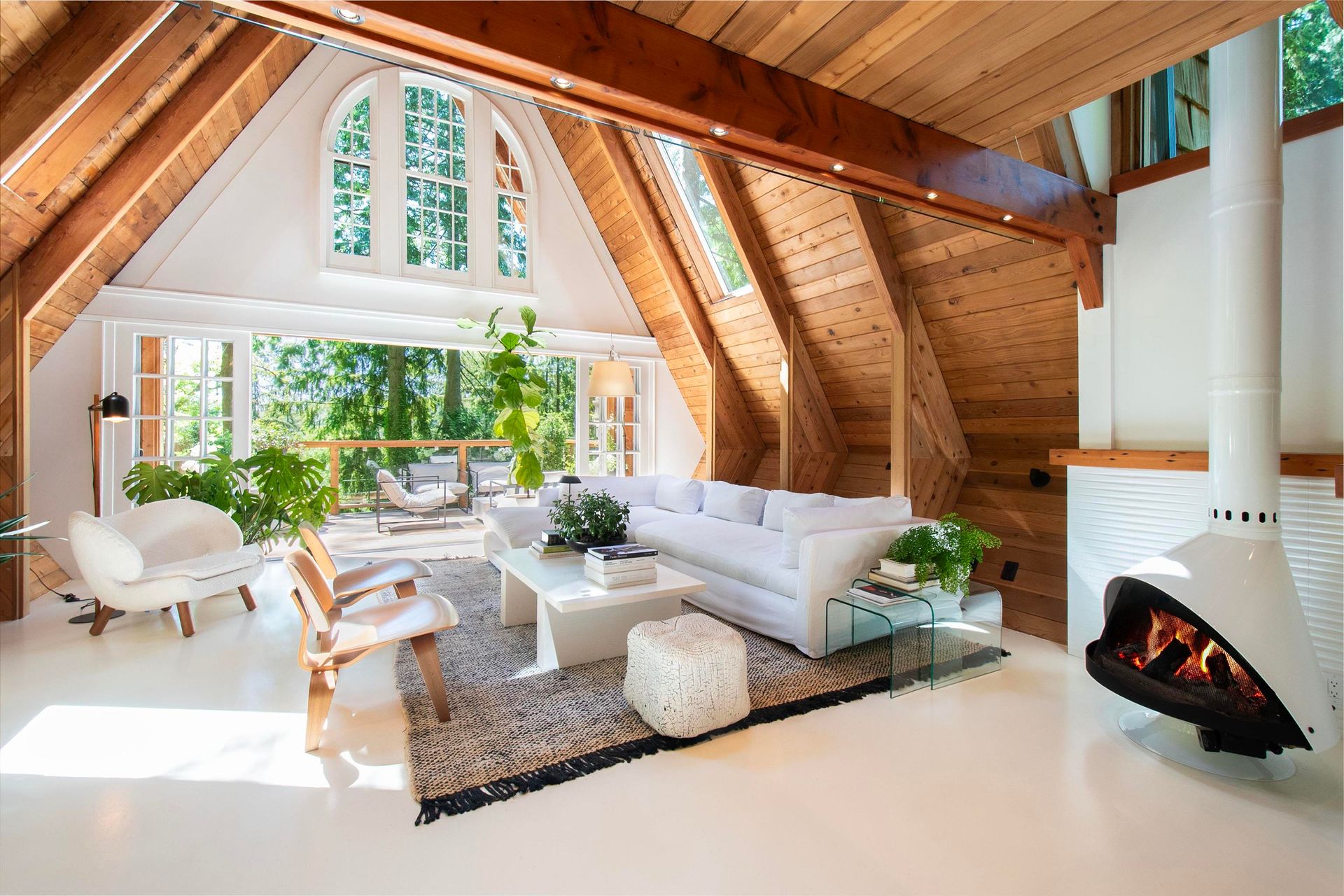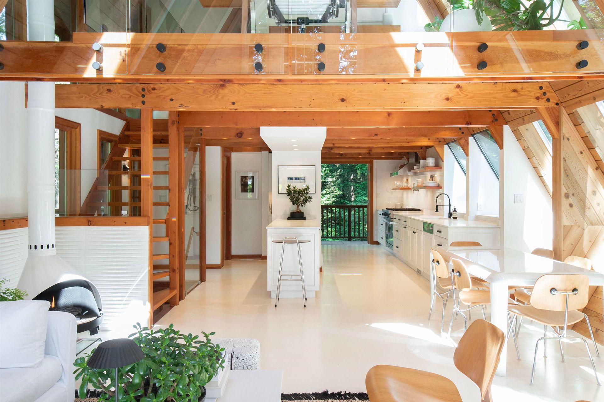 Prepare to be awed by this jaw-dropping A-frame masterpiece—a true architectural treehouse offering total seclusion & next-level style. Hyper cool. Bold. Inspiring. White epoxy floors, warm fir accents, sun drenched setting, floor-to-ceiling windows that dissolve the boundary between indoors and pure nature. Immerse in 0.6 acre of private forested beauty . Every patio & balcony invites the outdoors in. The open loft, soaring ceilings, sculptural lines & inspiring spaces make this a home that’s as much an experience as it is a residence. As bold as it is beautiful—crafted for those who crave connection to nature and design in equal measure. This is elevated, expressive living like nowhere else!