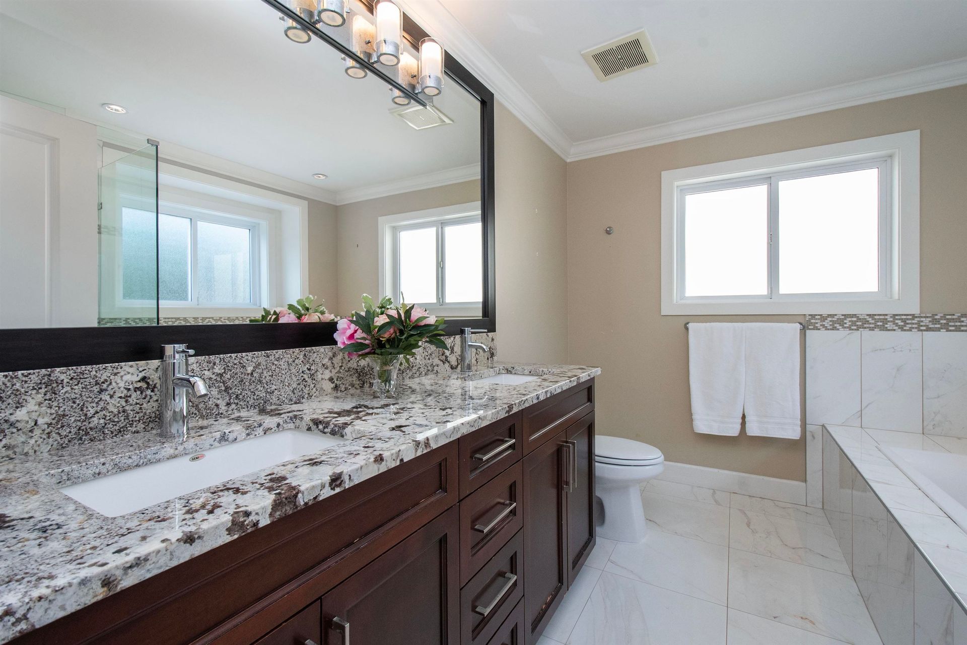 Lifestyle, designer finish & BEST family value! Imagine family dinners that flow from a gorgeous granite kitchen (w/pantry) to a sun-filled great room, then out to your private, level yard for evenings under the stars. Upstairs, retreat to a dreamy primary with spa-like ensuite & walk-in closet, while kids enjoy their own bright bedrooms. Downstairs, host movie nights in the rec room with wet bar! Guest bed & bath (or office) PLUS – a perfect 2 bedroom legal suite as mortgage helper. All this in a true family neighbourhood, steps to parks, trails, schools & the charm of Lynn Valley Village. Sharply priced, this home is your chance to start the lifestyle you’ve been waiting for – but not for long, so call now!
