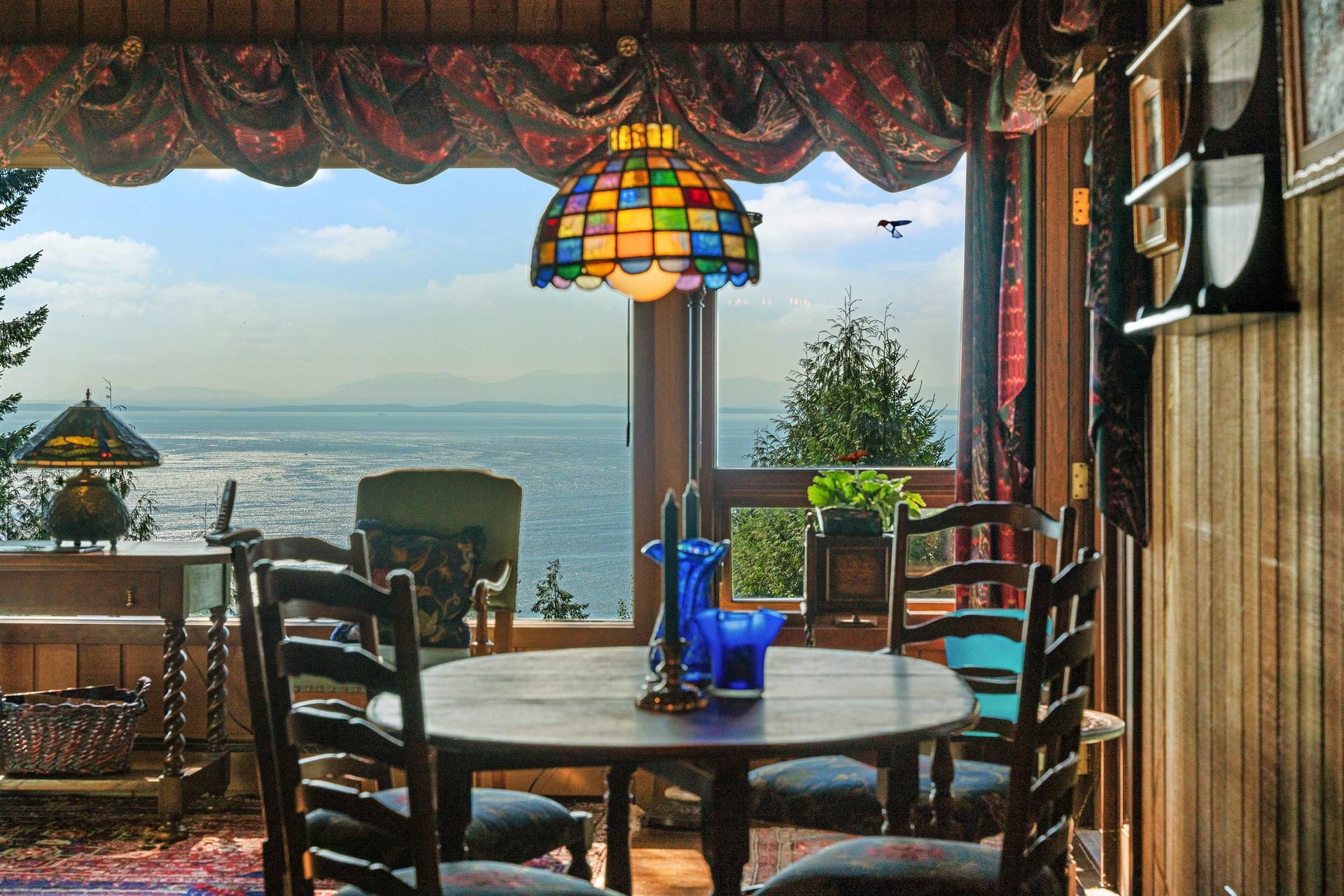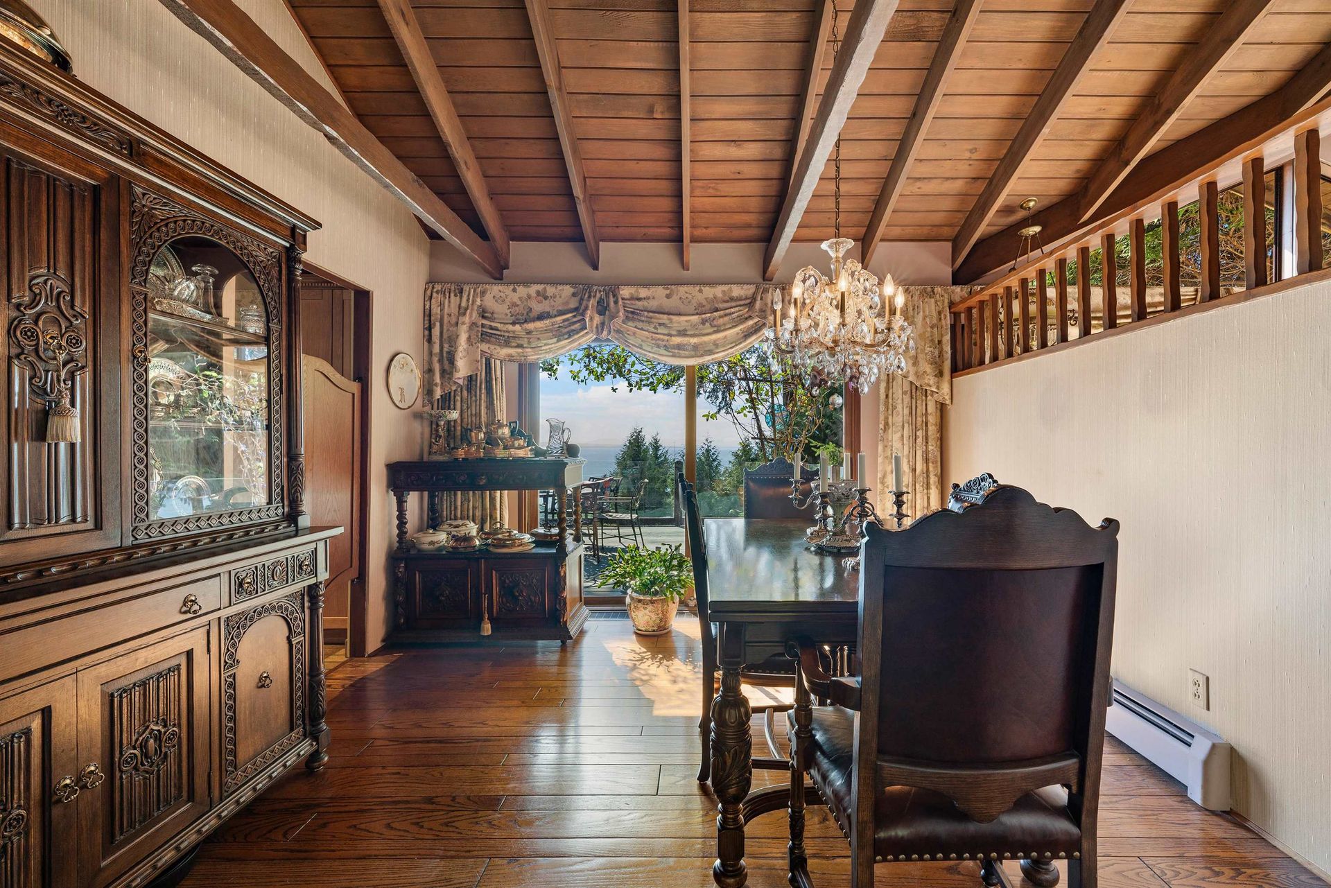 First time on the market, EPIC VIEWS, this iconic West Van residence is a rare offering! Set on almost 13,000 sq ft perfectly sloped property with SPECTACULAR SUNSETS, this architectural gem was originally custom built by Bob Lewis. A true example of exposed post-and-beam style, it features dramatic vaulted ceilings, Texas Select Oak flooring, specialized windows, and timeless design that blends naturally with its surroundings. VIEWS FROM EVERY LEVEL! Kitchen features Miele d/w, Wolf oven, Thermador cooktop, SubZero Fridge, and VIEWS FROM THE KITCHEN SINK! Spacious primary suite +2 more beds & den. Walking distance to Collingwood, this property offers valuable land and the irreplaceable architecture—a home of pedigree and vision. Opportunities like this, don't come twice!