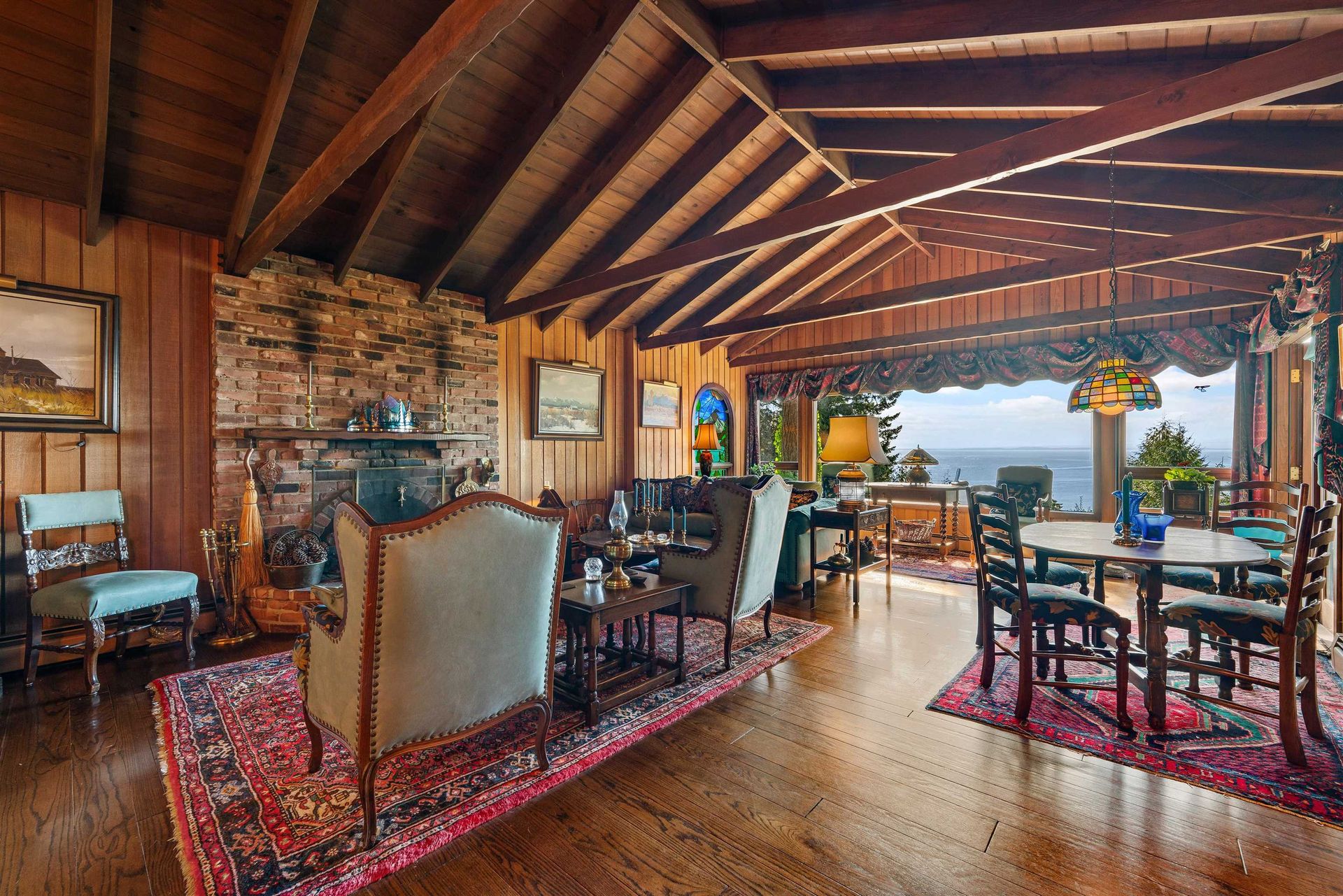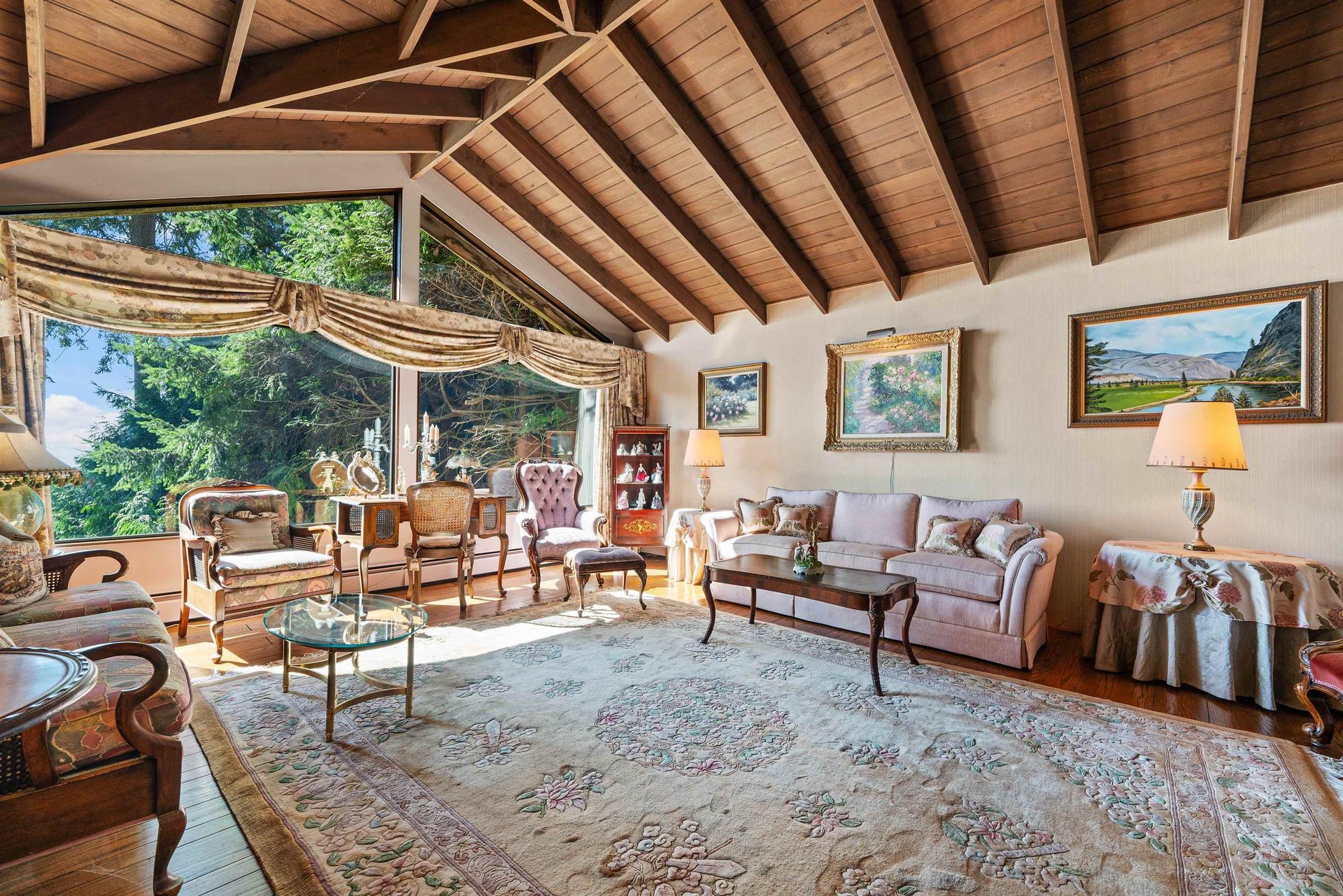 First time on the market, EPIC VIEWS, this iconic West Van residence is a rare offering! Set on almost 13,000 sq ft perfectly sloped property with SPECTACULAR SUNSETS, this architectural gem was originally custom built by Bob Lewis. A true example of exposed post-and-beam style, it features dramatic vaulted ceilings, Texas Select Oak flooring, specialized windows, and timeless design that blends naturally with its surroundings. VIEWS FROM EVERY LEVEL! Kitchen features Miele d/w, Wolf oven, Thermador cooktop, SubZero Fridge, and VIEWS FROM THE KITCHEN SINK! Spacious primary suite +2 more beds & den. Walking distance to Collingwood, this property offers valuable land and the irreplaceable architecture—a home of pedigree and vision. Open Sun 2-4