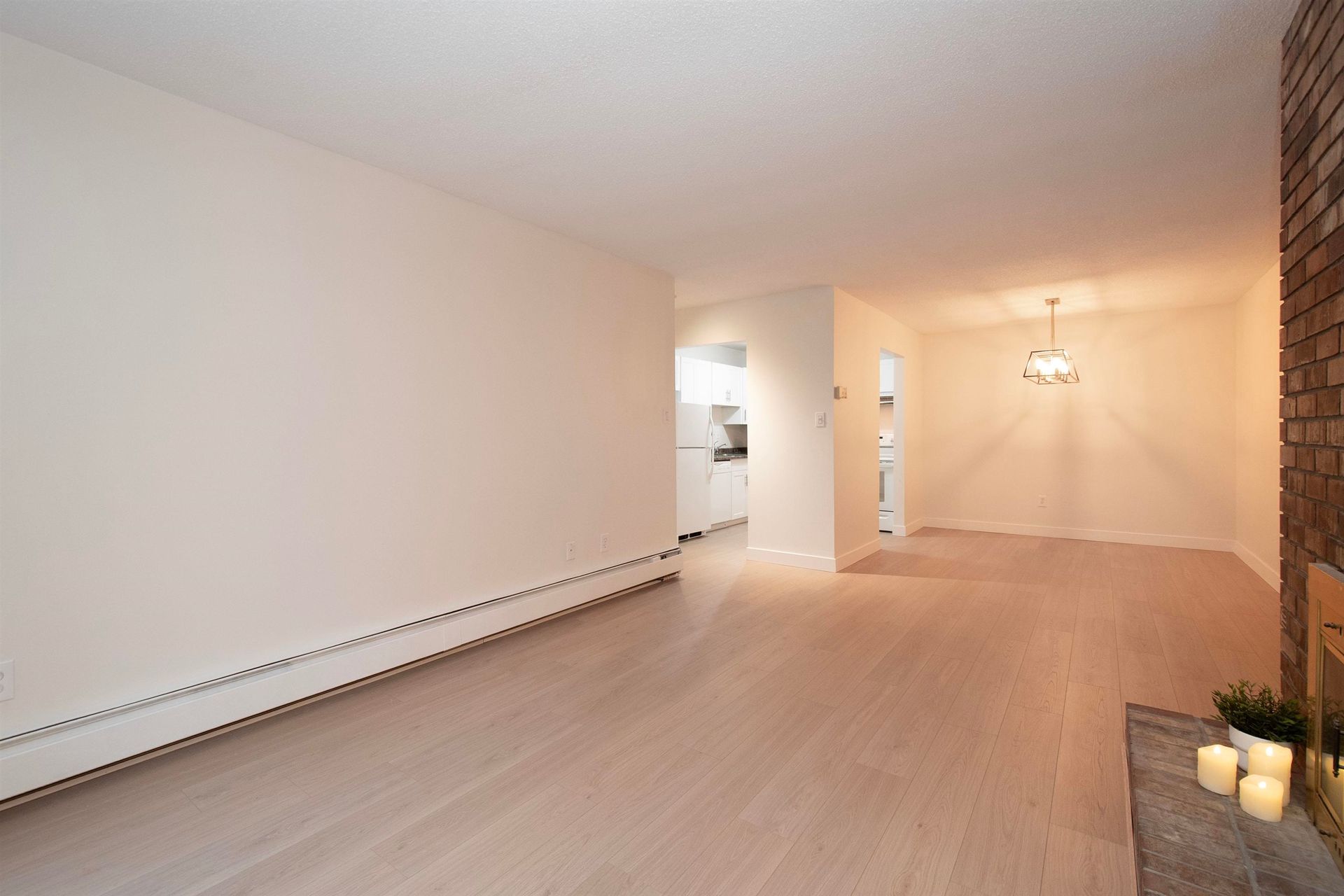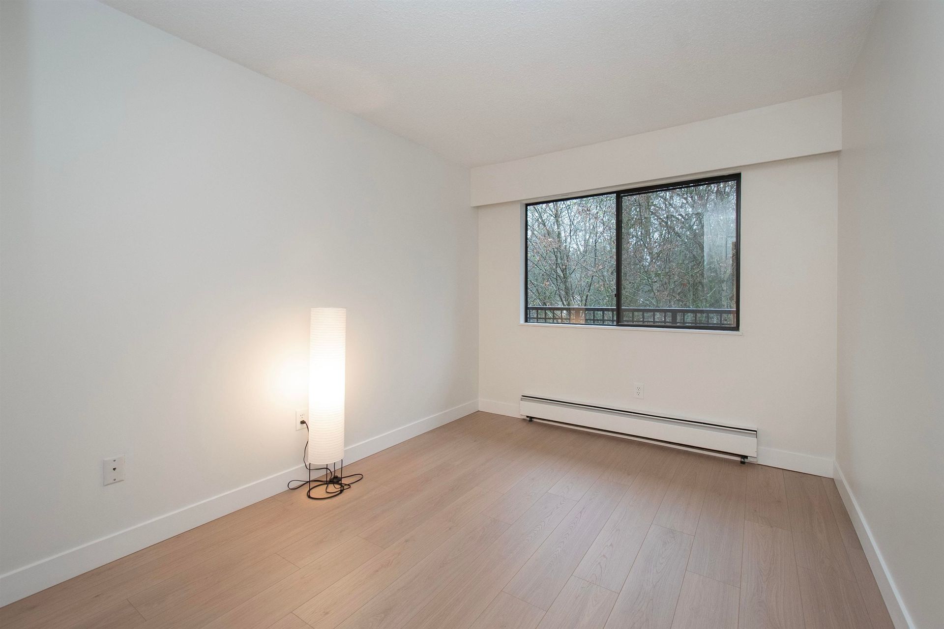 BRAND NEW RENOVATION! Bright and stylish! Almost 1,000 sq ft 2-bedroom, 1.5-bath home sits steps from Lynn Valley Town Centre, yet feels worlds away. Enjoy UNPARALLELED PRIVACY on your 195 sq ft balcony overlooking a tranquil treed canopy and soothing waterway—a true outdoor sanctuary. Inside, everything feels fresh: new flooring, paint, lighting, fixtures, and a heartwarming wood-burning fireplace! House sized rooms, white kitchen, ample storage, in-suite laundry & extra rental parking if needed. MOVE IN READY! The building offers a huge rooftop deck, workshop, recent exterior upgrades and is pet friendly. Just a flat two-block stroll to LV Village and top schools. Maintenance includes hot water heat. This is the PERFECT PACKAGE—nature, comfort, and community! Get inside today!