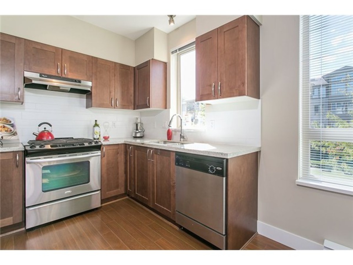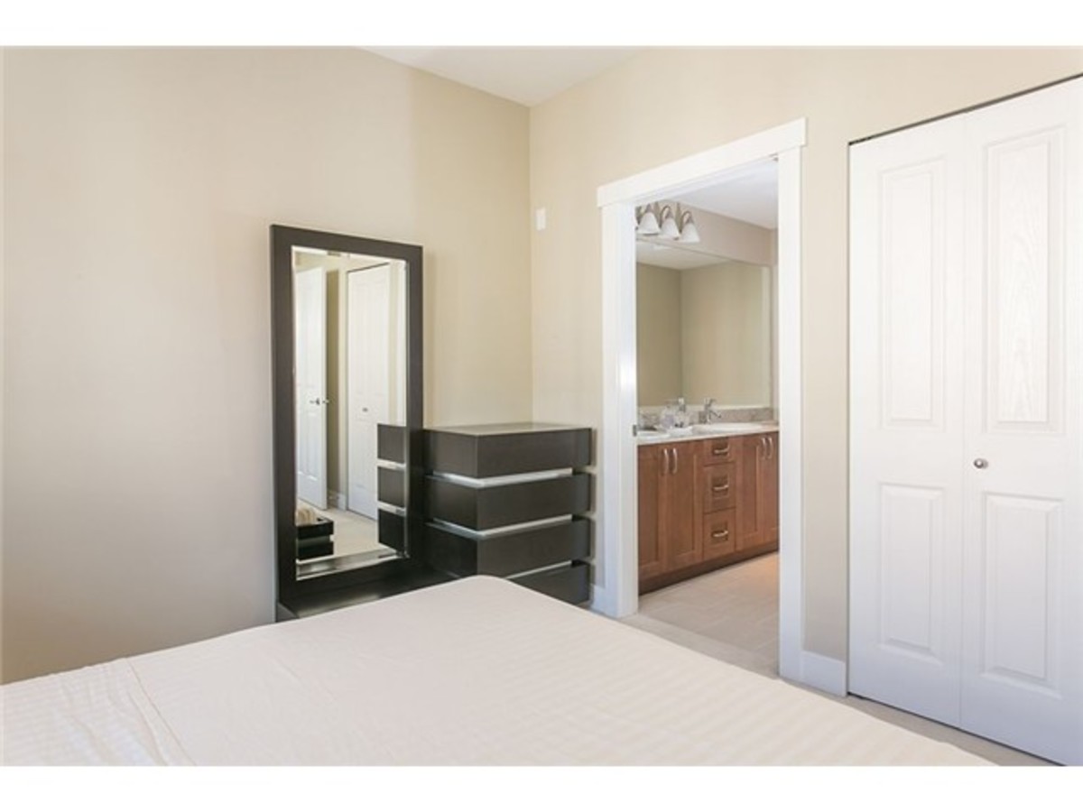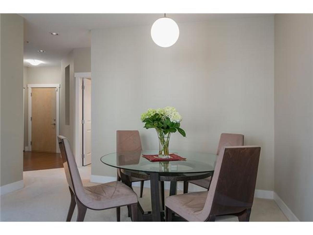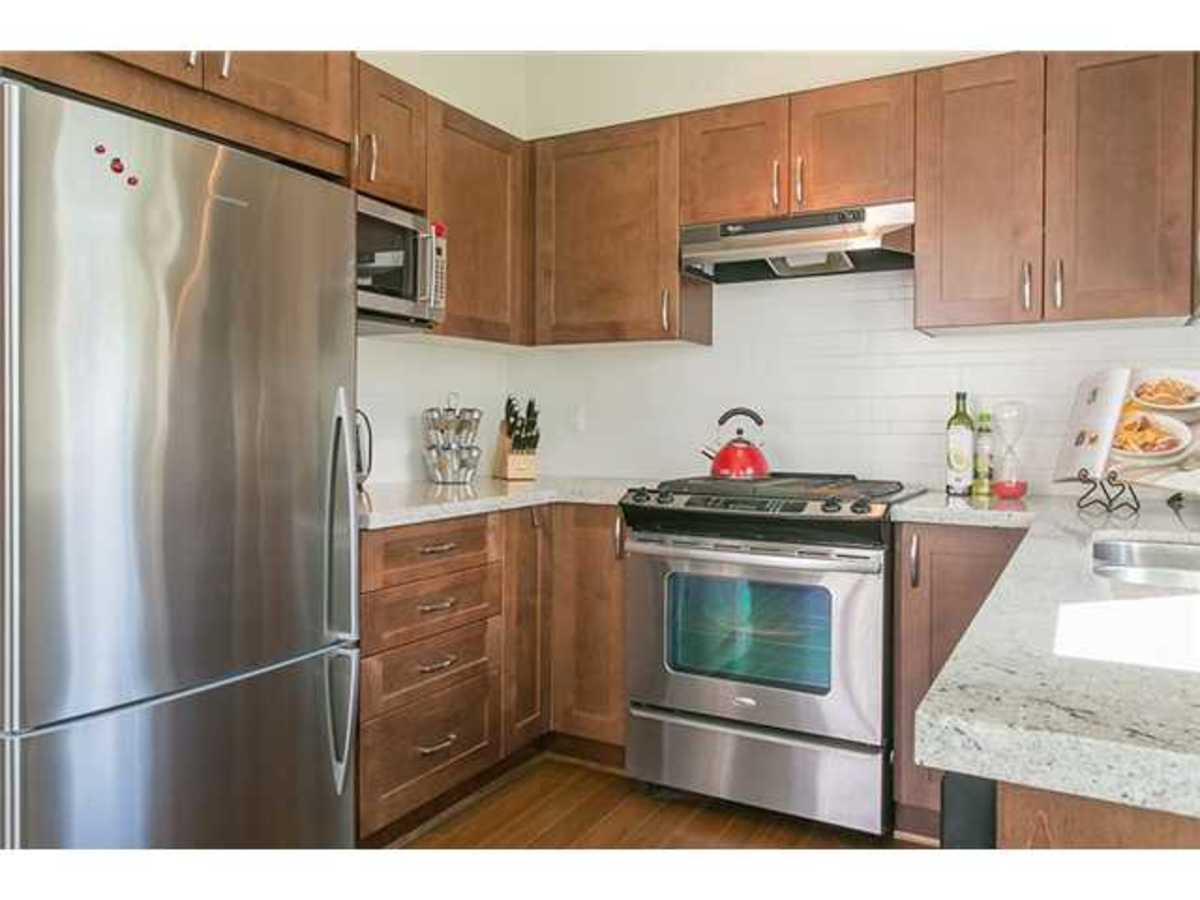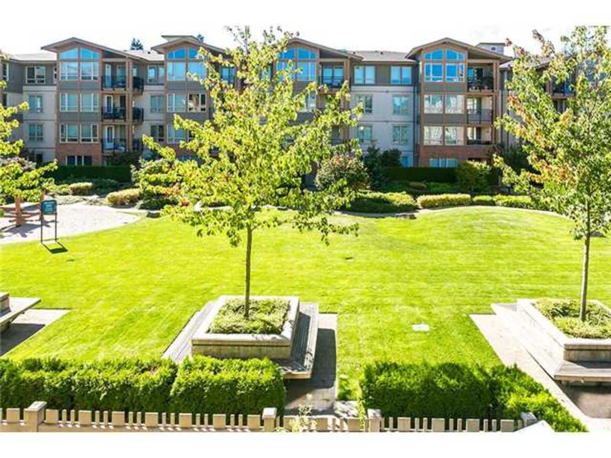 Stunning new listing in Branches! Quiet cul-de-sac location! Corner suite with light pouring in facing manicured courtyard! Two bedrooms are separated by living area. Master features luxurious ensuite with double sinks, granite, separateshower and soaker tub. Second bedroom has full bath in the hall close by. Gorgeous kitchen with eating area opening out to sunny deck! Granite, Gas range and gorgeous cabinetry! All like new! Branches is Polygons fabulous development right by Lynn Valley Centre with all its cafes, restaurants, shopping, and Library. Walk everywhere! Underground parking and storage.