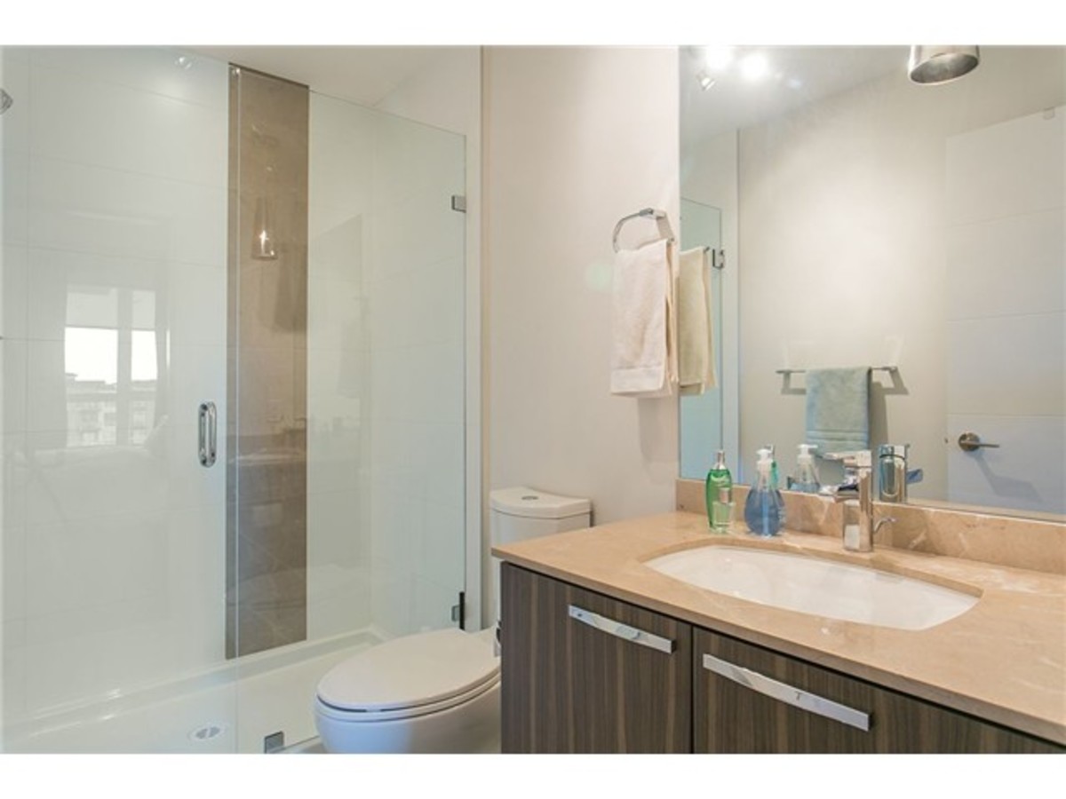 Penthouse living with PRIVATE ROOF DECK! Discover the best of REMIX! Adera's top quality boutique building! Custom upgrades aboud in the well laid out 822 sq ft, 2 bed and 2 bath suite. Spine staircase leads you to your enormous private roof deck where you enjoy all day sunshine & 360 degree views of the City, Harbour, Lions and mountains. Finishing is second to none with Laminate, engineered stone countertops, pendant lights over custom island. Master suite features oversized shower and walk in closet. Family bathroom is complete with soaker tub. Just like new but no GST! Building Gym. Parking and storage on P1. Open Sat 2-4 or call for private showing!