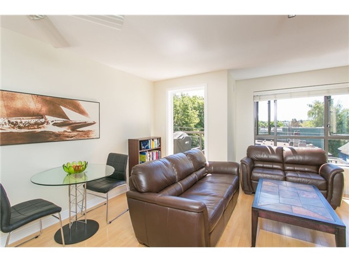 TRAFALGAR SQUARE! South facing penthouse suite, premier building in Kitsilano's best neighbourhood! Balcony and windows face out to beautiful treed view over the quaint homes in Kits! First time on the market, this one bedroom, balconyfeatures den, huge insuite storage room, closet organizers, semi ensuite and in suite laundry! Gas range, granite, and shaker cabinets in the kitchen are a chef's delight and the bar makes a perfect place for entertaining! Gas fireplace, parking, well run building, location beyond compare! Stroll to all the shops, restaurants, and the BEACH! First showing Tuesday 10-12. Then call for appointment!