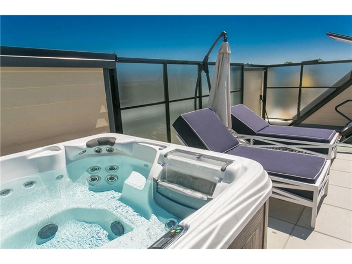 Summer Party? Roof Deck Extrordinaire! Hot Tub! Unbelievable 360 degree view from your private roof deck! Absolute Stunner! Custom upgrades everywhere! Luxe granite counter and seamless backsplash anchor the kitchen& dining! Marblefireplace in living room and then great BBQ deck right off the living. Master bedroom features, second electric fireplace and oversized walk in shower! Second bedroom fits queen bed or desk and fold out couch/bed. Beautiful second bathroom with soaker tub and Laundry on main. Upstairs? Well, what more could you ask for??? Unbelievable! Fabulous Adera Building- REMIX. WALK TO EVERYTHIING! Great Gym! Parking, Storage, BY APPOINTMENT ONLY- CALL NOW!