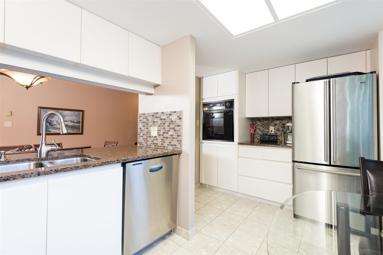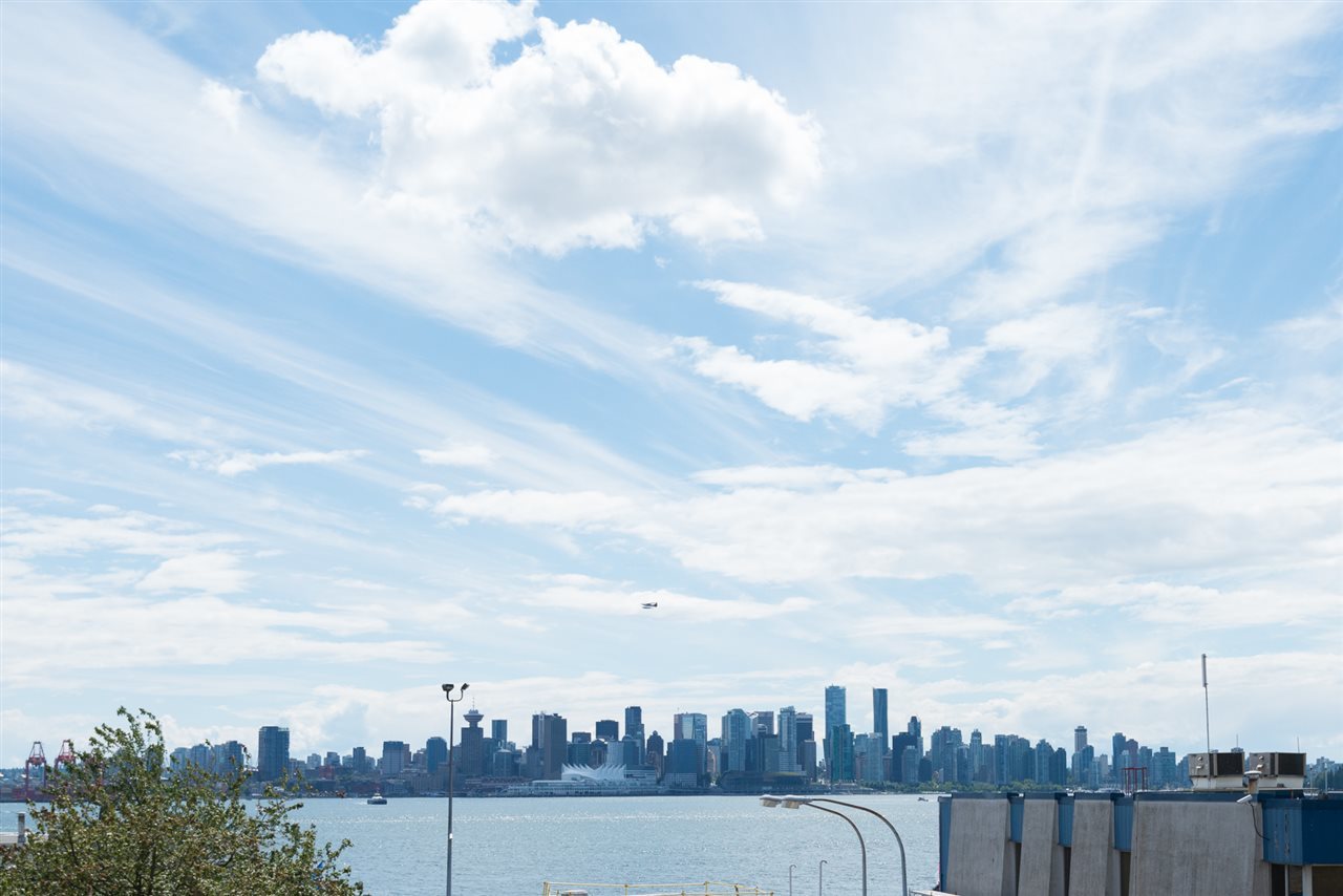 LONSDALE WATERFRONT! Chadwick Court with 2 oversized private patios which are great for gardeners and entertainers alike! Wood flooring throughout, new lighting, granite throughout the 2 bathrooms and the kitchen. New appliances throughout as well! Master bedroom has fabulous closets and a huge en-suite! Second bedroom walks out to one of the patios and the third bedroom is off the living and dining. Dining room is spacious enough for two buffet hutches and living room features the downtown view and gas fireplace. HUGE storage and great parking! Excellent BOSA building with great contingency and very well run. Move in and enjoy your secure investment! No Pets, no Rentals. Lounge, Workshop, Library, Gym. Flat to Esplanade or drive in and take the elevator directly up!