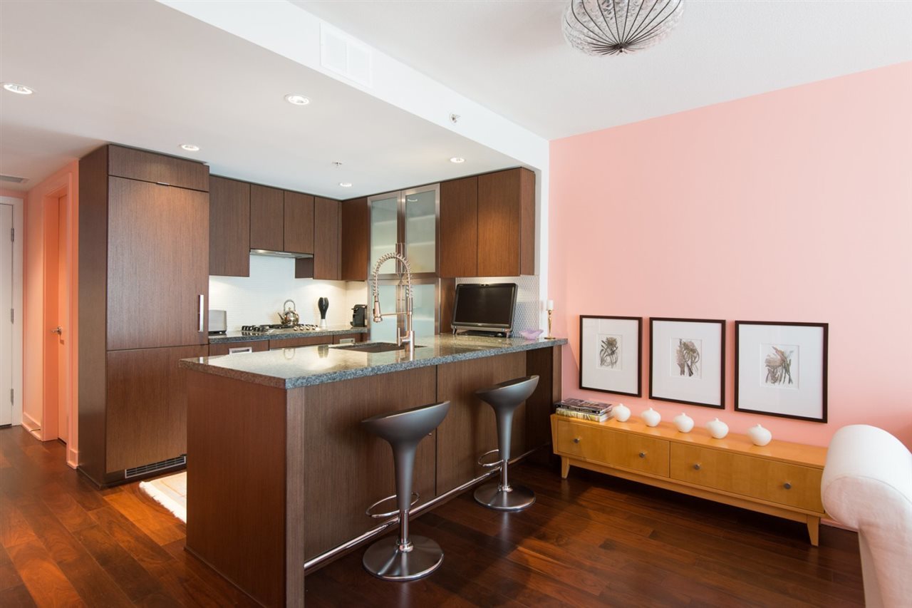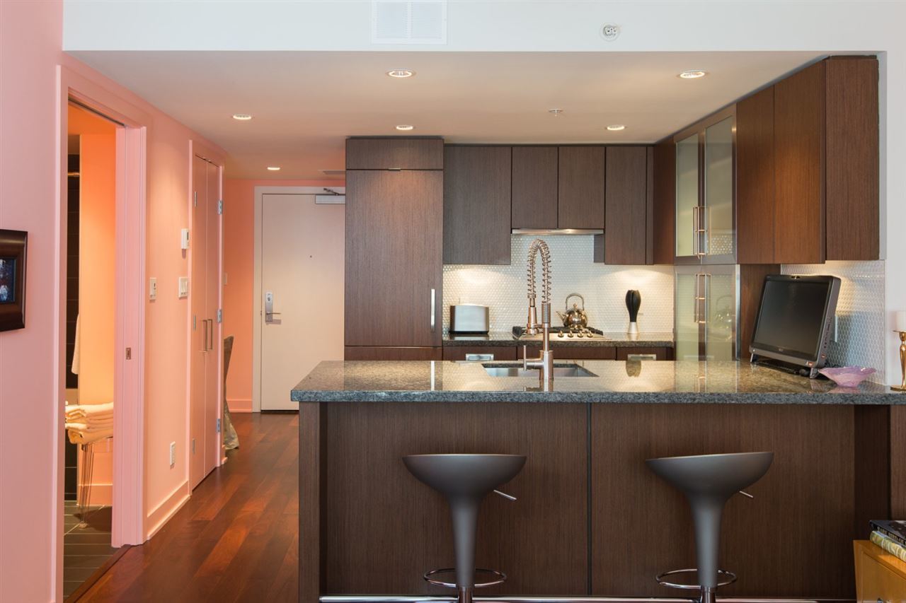 Discover DONOVAN! Boutique Building for the finer things in life! Geothermal Heating, Air Conditioning, Miele Appliances, Gorgeous Hardwood, thoughtful & inspired design & finish! Stunning kitchen with all the bells & whistles opens to bar and great room. Living and master open to deck finished with custom flooring. Master bedroom features beautiful mill work & is wired for TV. Spa bathroom with TOTO toilet & sumptuous tub! Entrance area is enhanced with a flexible space, perfect for reception area, office, or studio. PLUS you still have a massive in-suite storage which is outfitted with desk, extra walk in closet & pantry area. Great Gym, sauna & steam, yoga, garden, second lobby off lane & party lounge! External Storage on lobby level! Secure Parking in building! YALETOWN's BEST!