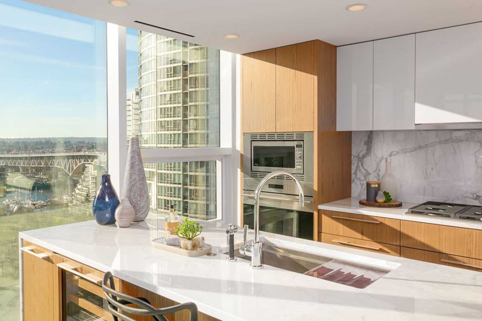 The Charleson! Bespoke living is here. Only the best of everything! Customized layout for wide open living and breathtaking floor to ceiling views from everywhere! Spacious great room and massive deck! False Creek, David Lam Park, George Wainborn, Seawall, Mountains! Soft and sophisticated pallette of white oak flows throughout! Fully Smart with Control 4, electric blinds, custom closets, gorgeous millwork, Wolf, SubZero, Wine fridge, Dornbracht, LEED Gold status, 11500 Wellness centre with rooftop pool, hot tub, professional gym, luxe boardroom, it goes on and on. Private double car garage on P1, massive private storage room (ask for details), private bike storage locker. Must be experienced!
