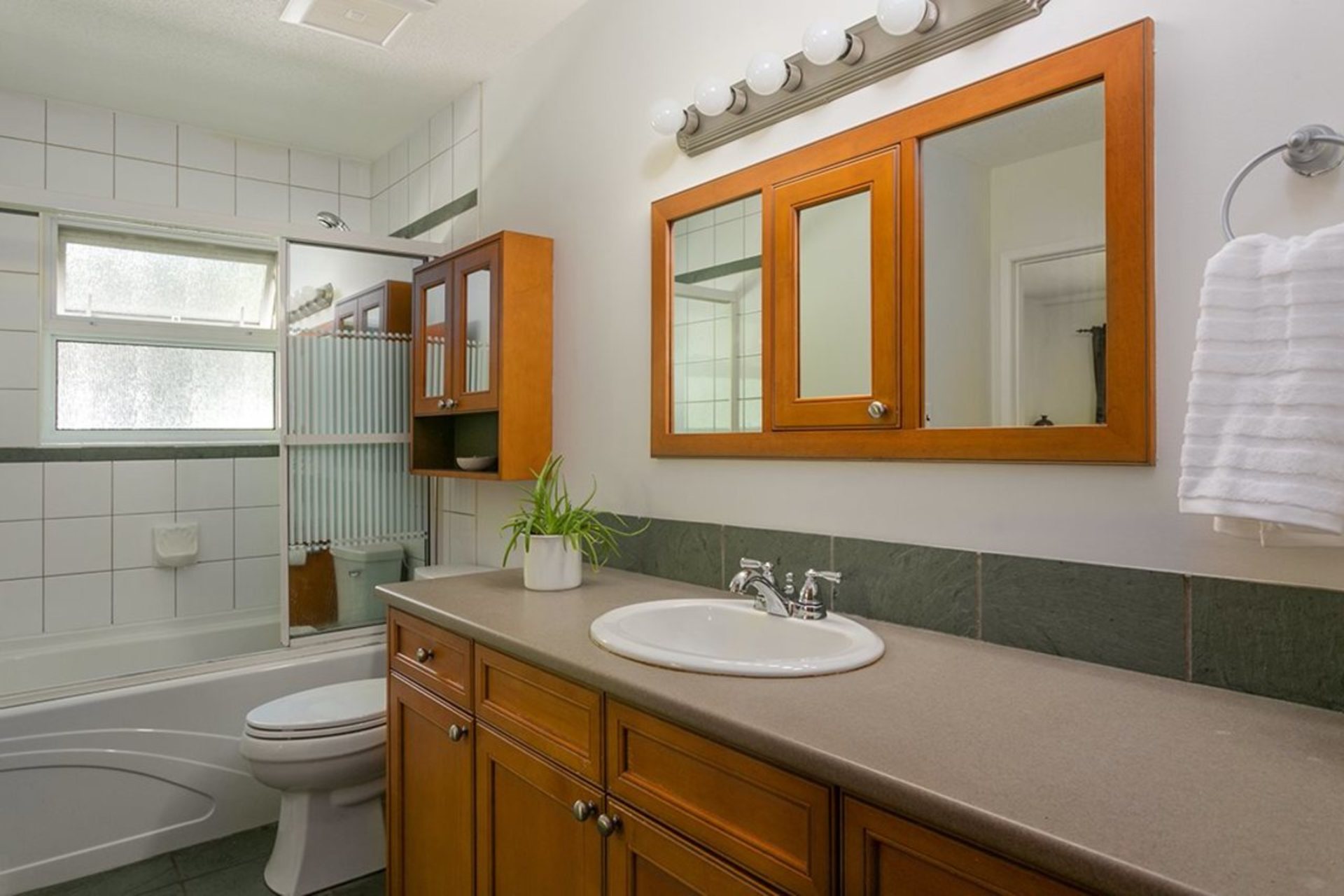Bright Beautiful Family Home! Gorgeous hardwood floor throughout main floor & creates flow from one living area to the next. Cool brick, wood burning fireplace in spacious living room. Dining room and kitchen open to 222 sq ft south facing deck! Bright white kitchen features black silestone, & built in eating area overlooking the fenced in back yard. 3 beds up, 2 beds down. Rec room features bright sunlight & cozy gas fireplace! Second kitchen, so suite if you wish. Great mud room for all your sports gear! Stunning outlook and fabulous privacy! If you like to garden, there are areas for veggies or flowers. Most convenient location in fabulous neighbourhood! Walk to Park & Tilford, theatres, Downtown in 20 min, easy access to Upper Levels, Trails at your doorstep! A dog lovers paradise!