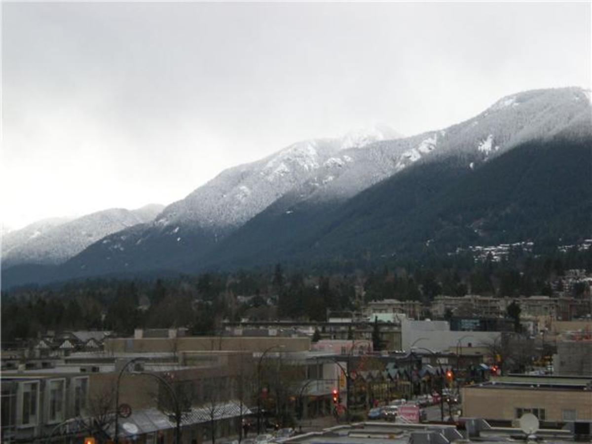 THE PIERMONT! Prestigious and well run, concrete, building in Central Lonsdale! Soak up true West Coast nature with this PANORAMIC VIEW OF THE NORTH SHORE MOUNTAINS! Upscale one bedroom with large covered balcony accessible from both the living room and the bedroom. Efficient layout, laminate floors, beautiful open kitchen with stainless steel appliances, walk through double sided closet and semi ensuite bathroom. Worry free living in this building where pride of ownership is apparant. Easy to show!